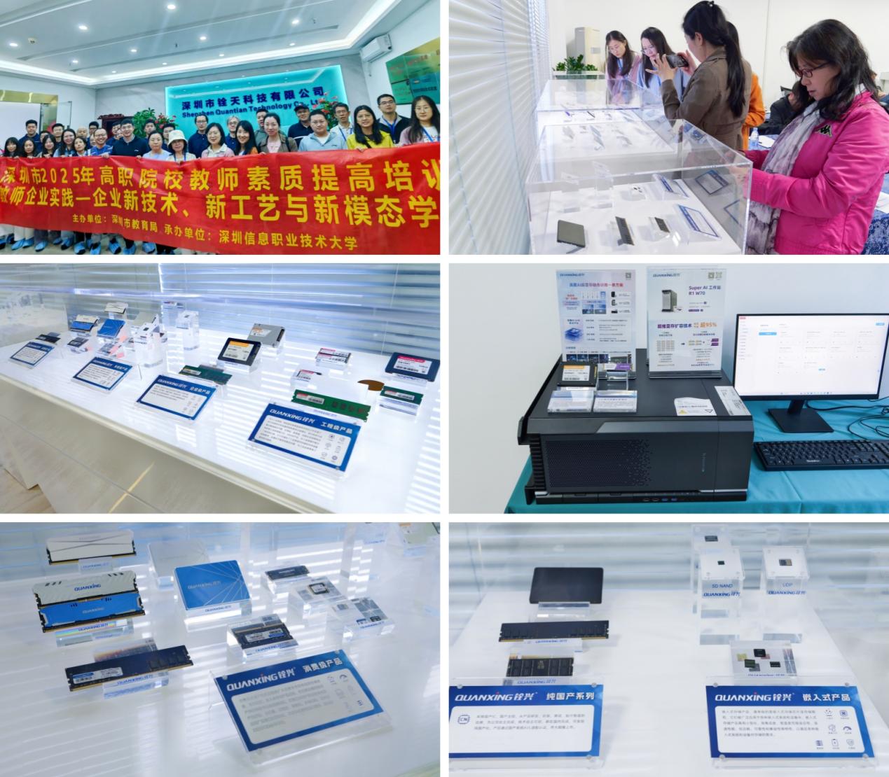 从全栈能力展示到产线实地观摩,活动全面介绍呈现了铨兴在AI与高端存储领域的战略布局,并重点演示了可降本95%的AI超显存融合解决方案及企业级存储解决方案;同时,通过产线参观环节,让教师亲睹高端存储产品的精密制造与质控体系;最后的自由交流环节分设AI与存储两大专场,校企双方围绕技术难点、行业趋势与教学融合展开深度对话,实现了产业前沿与职业教育的思想碰撞与双向赋能。
